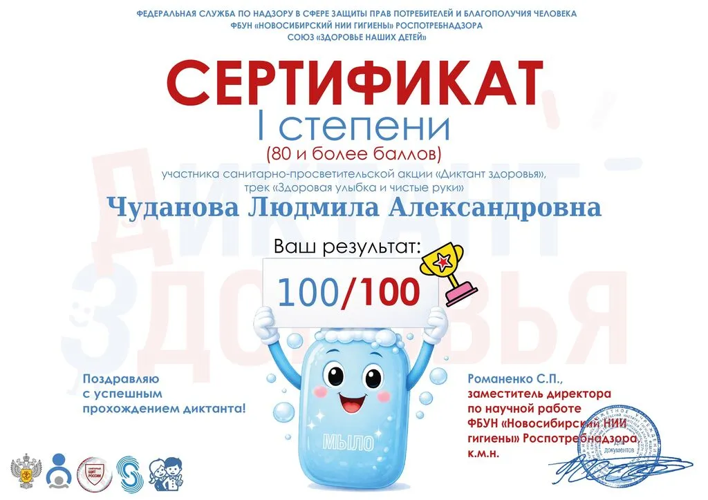 С 13 по 24 апреля 2026 года Роспотребнадзор запускает Всероссийскую санитарно-просветительскую акцию «Диктант здоровья» — «Здоровая улыбка и чистые руки».